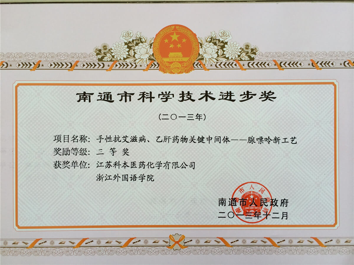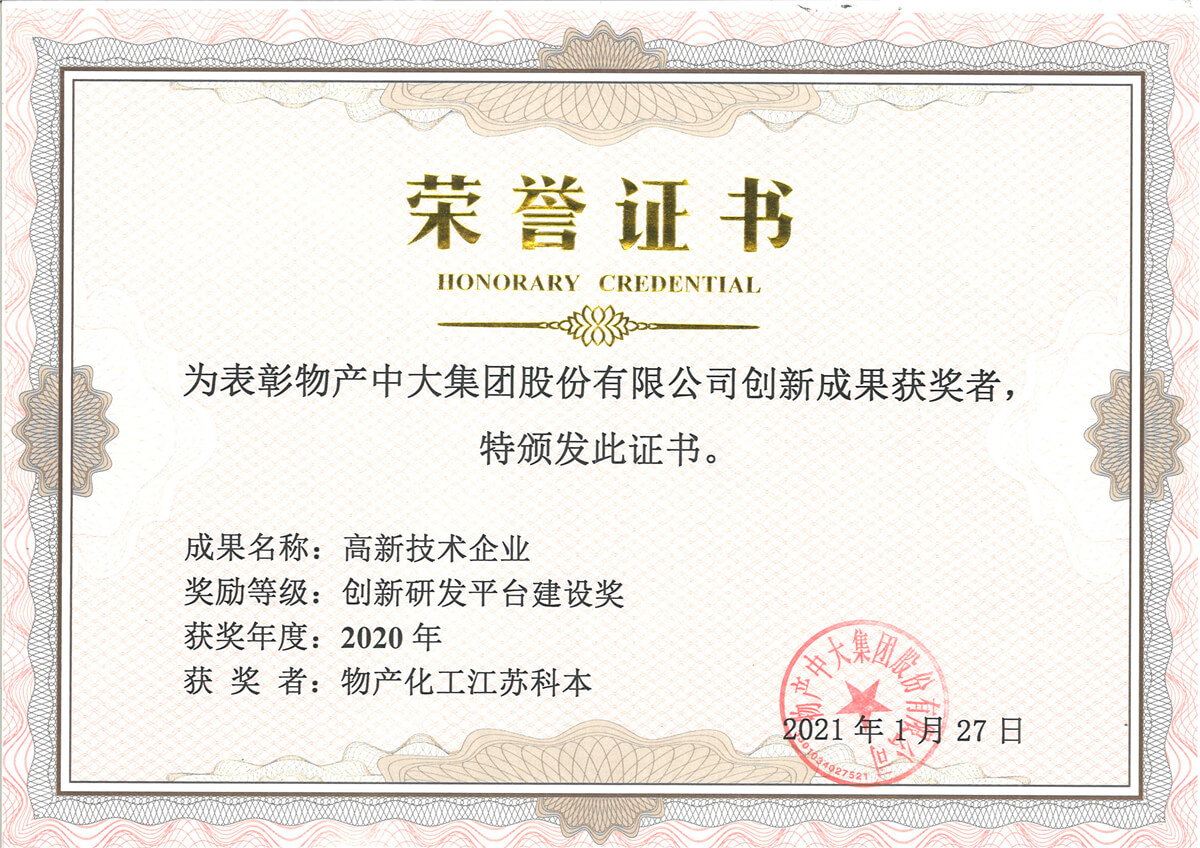 《手性抗癌藥鹽酸吉西他濱關鍵中間體的工藝創新及產業化》;高新技術企業(創新研發平臺建設獎) |